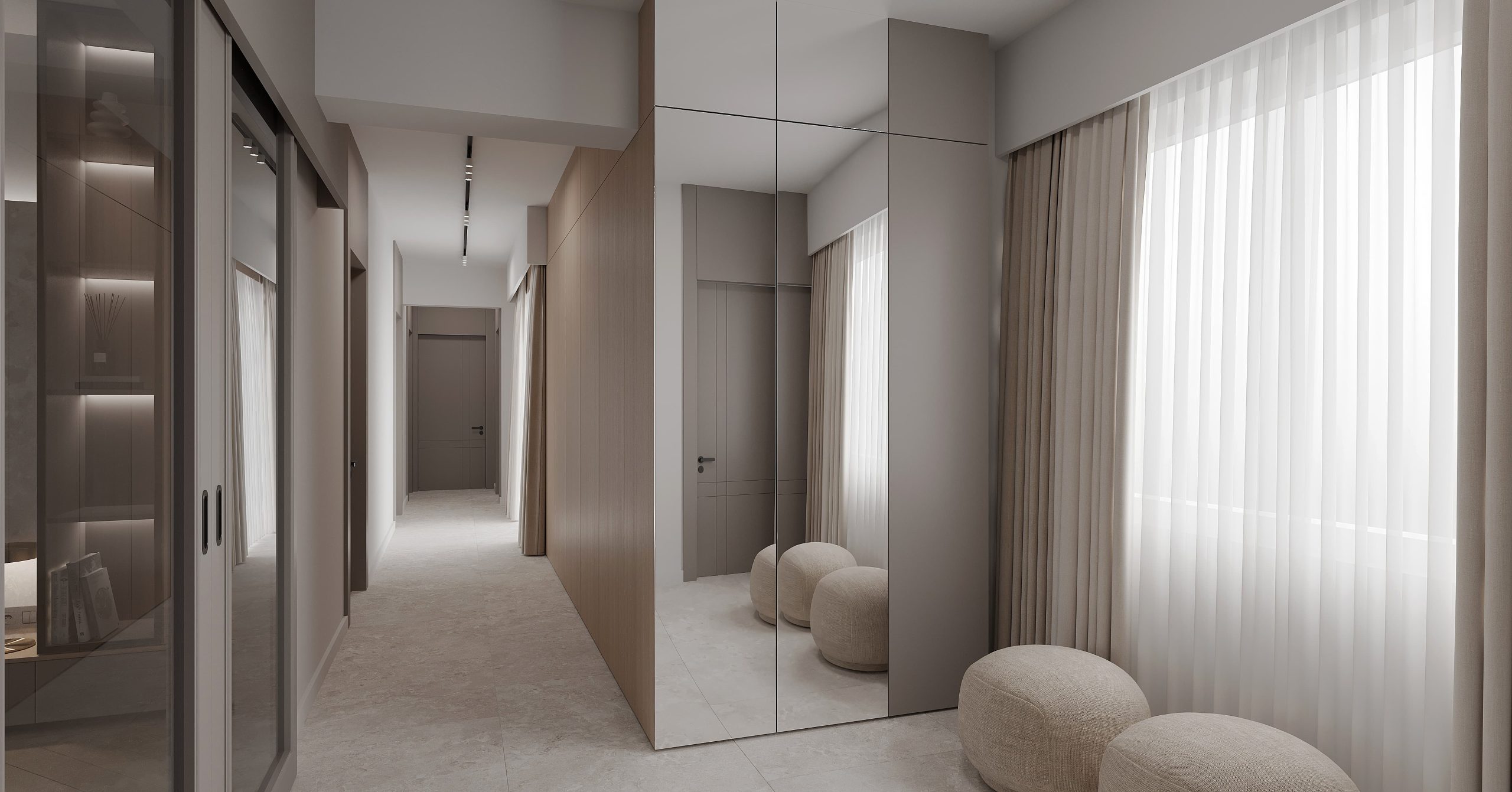 Daire Antalya’nın Muratpaşa ilçesinde ve çok merkezi bir yerde yer alıyor. 155 metrekare oturum alanına sahip olan apartman dairesi, 4 kişilik bir ailenin kullanımı için yeniden tasarlandı. İç duvarlarda çok az değişiklik yapılırken diğer tüm uygulamalar baştan ele alındı. Tüm mekanlarda eşit olacak şekilde hesaplamalar yapılarak aydınlatmalar konumlandırıldı. Evin genelinde soft ve sakin bir hava yaratmak amaçlandı. Renk paleti olarak zamansız olduğunu düşündüğümüz, sıcak ve samimi tasarım diline uygun ahşap ve toprak tonların birleşimi kullanıldı. Sakin ama çeşitli dokular ve objelerle hareketlilik kazandırarak projeye modern bir hava katmak istedik.