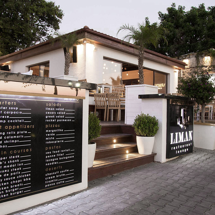 Side’nin en etkileyici manzaralarından birine sahip olan Liman Restoran, lokasyonunun sunduğu avantajların yanı sıra, sahip olduğu karakteristik özelliklerle de dikkat çekiyor. Restoranın geniş deniz cephesi ve merkezi konumu, onu bölgedeki önemli mekanlardan biri haline getiriyor. Ancak restoranın tasarımına en çok etki eden unsur, 20 yıllık heybetli kauçuk ağacı. Bu ağaç, restoranın kalbi gibi tasarımına ilham vermiş ve konumuyla mekânın atmosferini şekillendiren en önemli faktör olmuştur. Ağaç etrafına yerleştirilen geniş çaplı bar, gündüzleri restoran bölümü, geceleri ise bar olarak hizmet veriyor. 24 saat aktif olan bu bar, cam mozaiklerle modernleştirilmiş ve gece aydınlatmasıyla romantik bir ortam yaratılmıştır.