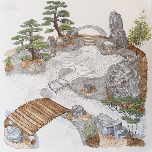 Zen bahçesi, Japon Zen Budizmi felsefesine dayalı, doğayla uyum içinde sade öğelerle tasarlanmış bir alanıdır. Taşlar, kum ve bitkiler gibi unsurlar kullanılarak, zihni arındırmaya, huzuru bulmaya ve içsel dinginliği keşfetmeye yardımcı olur